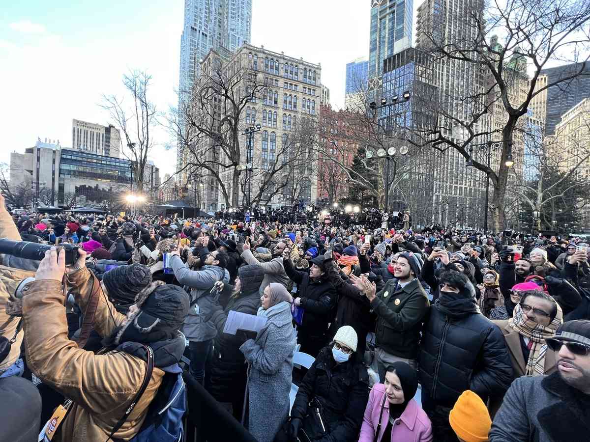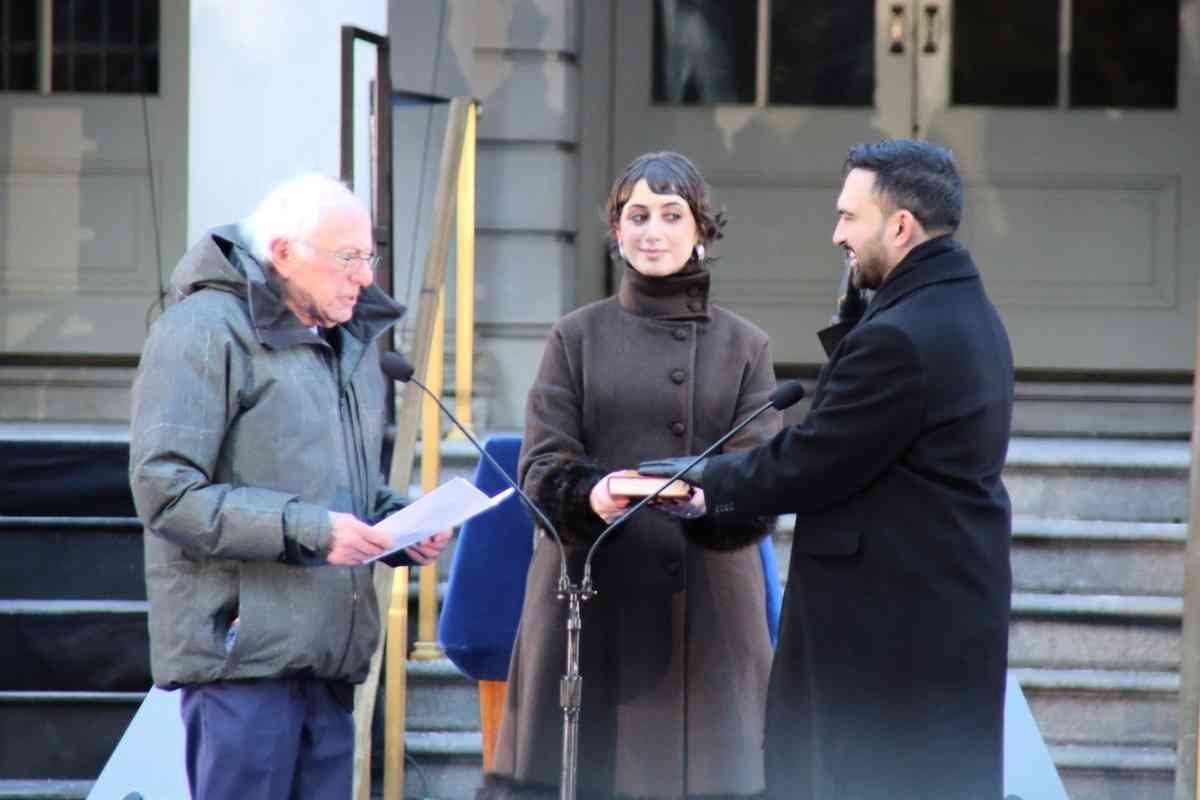2026年1月1日,勝選的曼達尼(Zohran Mamdani)在聯邦參議員桑德斯(Bernie Sanders)的主持下宣誓,正式成為紐約市第112屆市長。他也是這個城市第一位穆斯林市長、第一位新移民市長,同時34歲的他也是紐約市一個多世紀以來最年輕的市長。