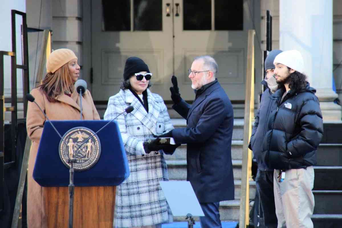 當天在市政廳台階前,連任的紐約市公益維護官威廉姆斯(Jumaane Williams)和新一任的紐約市主計長李文(Mark Levine)也分別宣誓就職。#