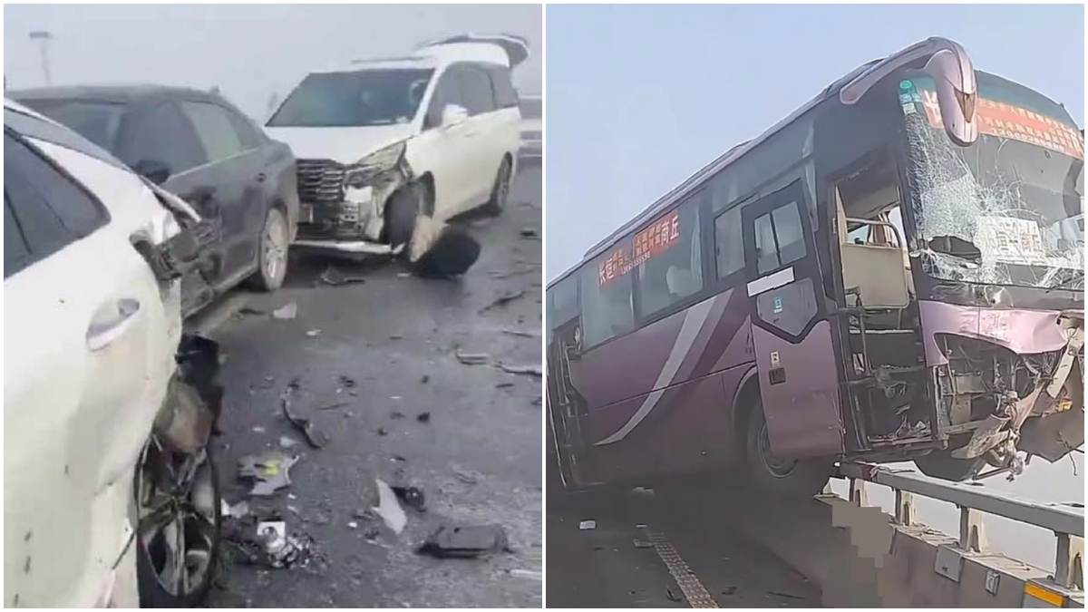 網傳影片顯示,大橋上一片狼藉,多輛車撞成一團,車身損毀嚴重。並且「扎堆撞車」的現場不止一處。網傳數十輛車出事。