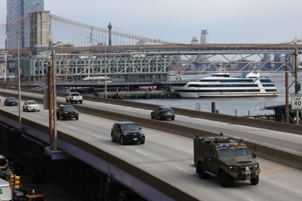 周一上午,載著馬杜羅的車隊離開位於紐約布魯克林的大都會拘留中心,前往法庭。