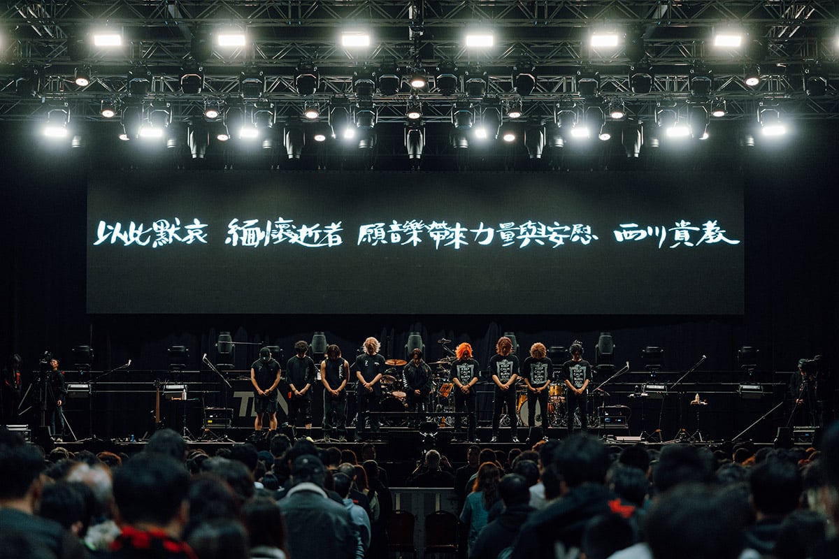演唱會開場前,全體表演者上台為去年大埔宏福苑火災罹難者默哀一分鐘。主LED屏幕顯示西川貴教親筆手寫訊息:「以此默哀 緬懷逝者 願音樂帶來力量與安慰 西川貴教」。全場燈光調暗,觀眾起身低頭靜默,為這場充滿療癒力量的音樂會拉開序幕。