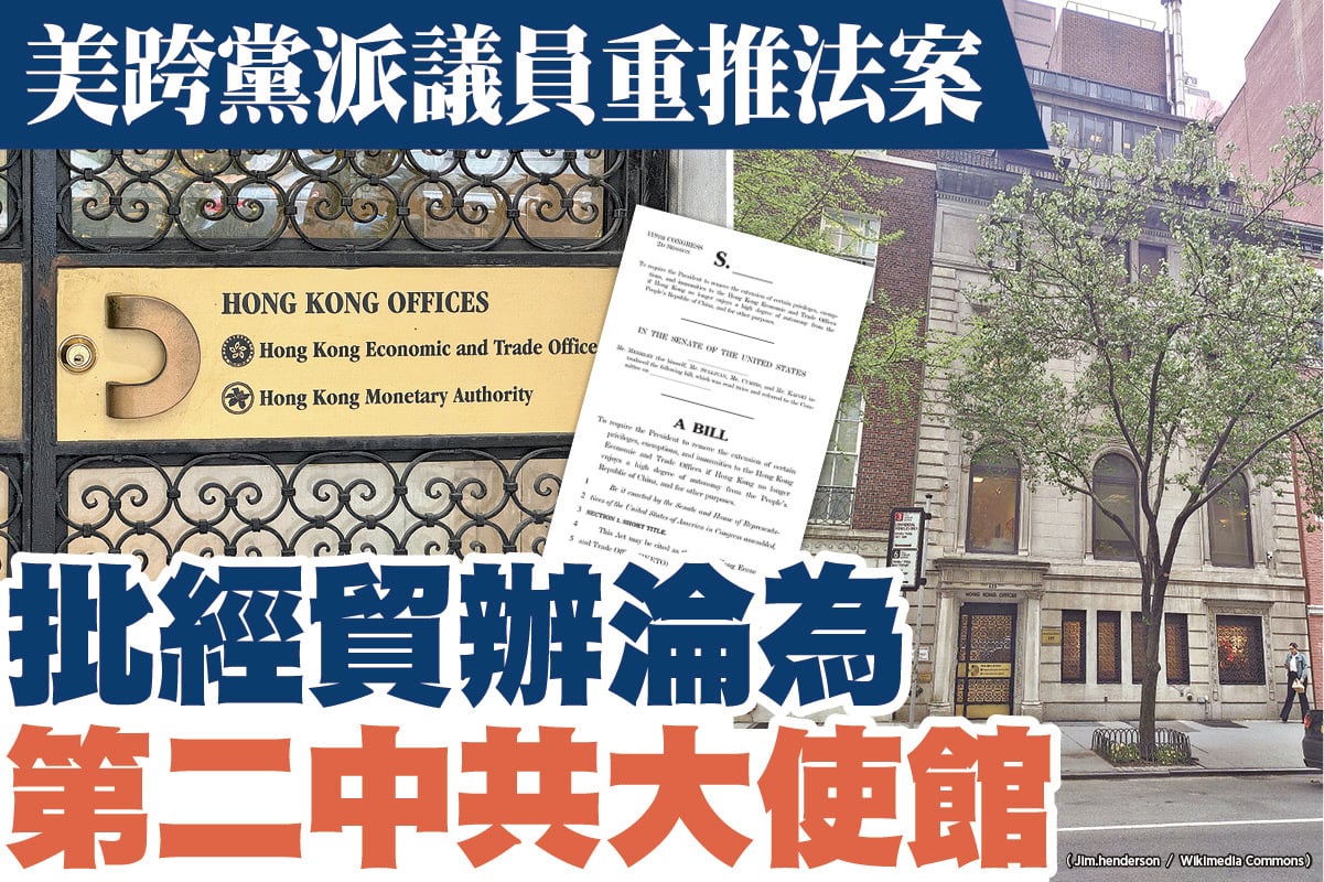 美國參議院跨黨派議員於當地時間15日再度提出《香港經貿辦認證法案》(HKETO Certification Act),要求美國政府重新評估香港駐美經濟貿易辦事處所享有的特殊外交特權。法案提案人指出,隨著中共方面對香港自治地位的破壞,相關辦事處現已轉變為第二間中共大使館。