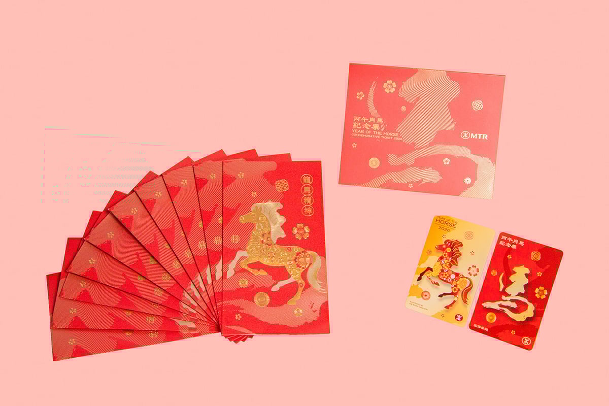 「港鐵馬年賀年車票」套裝售價為港幣130元,包括2張車票、 1個票套及10個利是封。一套兩款的「港鐵馬年賀年車票」,由港鐵前建築師區傑棠與八十後紙藝師黃文翰攜手創作作。2位創作人,分別以象徵喜慶與繁盛的紅色與金色作為創作主調,同時融合中國書法美學與精緻的紙藝設計,寓意香港新一年欣欣向榮、躍步向前。
