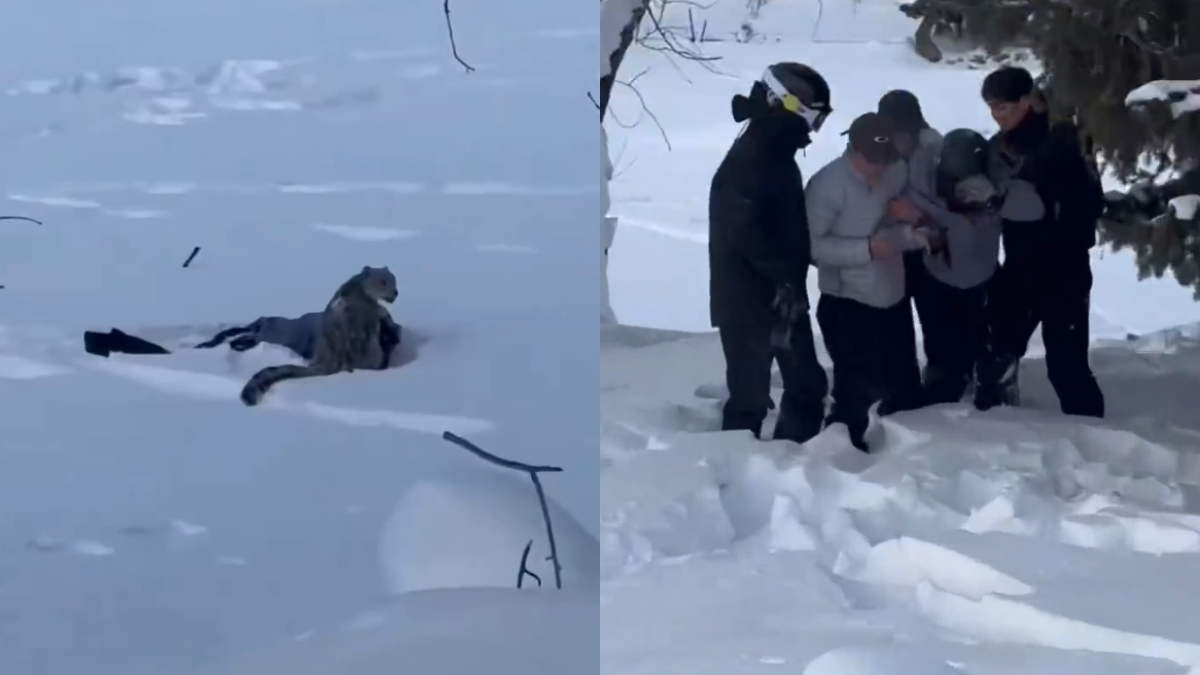 網傳的影片顯示,一名遊客躺在雪地,身旁有一隻雪豹四周觀望,附近有人呼喊:「有人被咬了。」「打120,打120。」最後雪豹往樹林裏走去。另有影片顯示,有一名穿著紫色滑雪服、頭戴頭盔的遊客被多人從雪地裏攙扶起來,並用手摀住面部,臉部、衣服都是血。