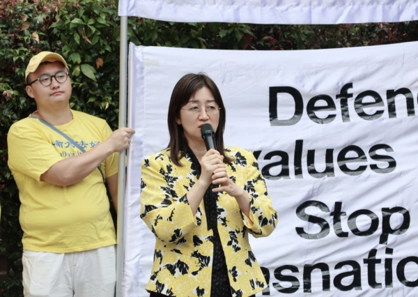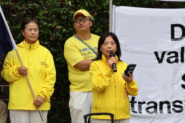 澳洲法輪大法佛學會會長趙博士(Dr Lucy Zhao)在集會上呼籲制止中共對法輪功長達26年的迫害,並關注中共將打壓行動延伸至海外,對澳洲的民主制度、基本自由與國家主權構成的威脅。