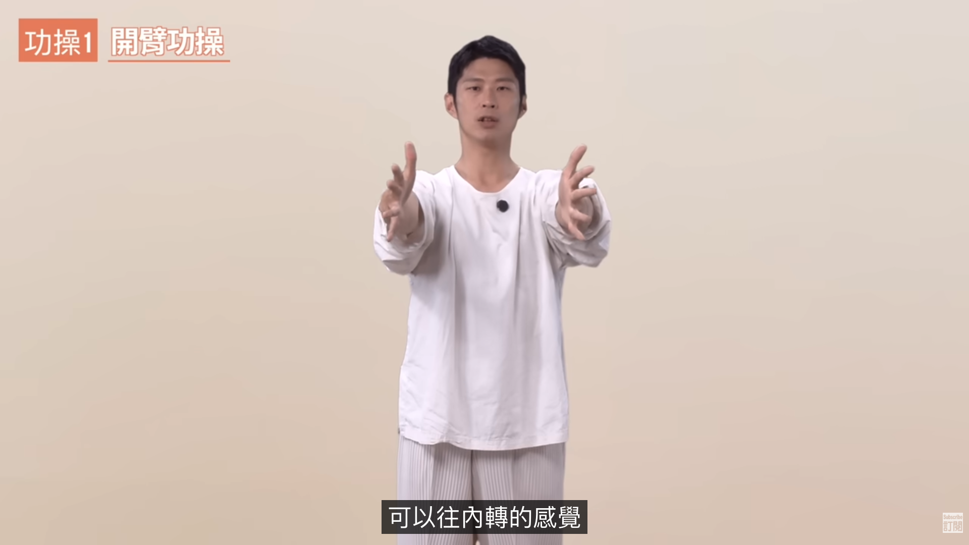 2)把手肘往內旋轉至手肘心相對,再轉手掌至掌心相對。