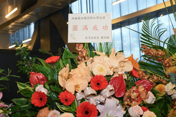 賴浩敏也特別致贈花籃,祝賀神韻演出圓滿成功,表達對神韻藝術家的祝福。