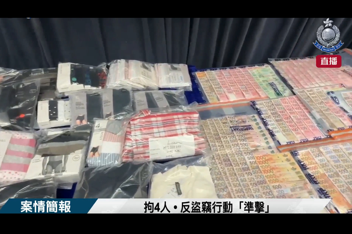 警方在行動中起回超過250件懷疑贓物,包括貼有價錢牌的衣物、個人護理產品、貴價酒、保健產品及食材等,同時檢獲大量現金及賊人犯案時所穿的衣物和手推車。