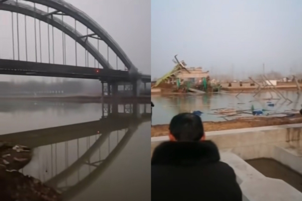 網民發布的現場片段顯示,一座正在建設中的大橋垮塌,一輛工程車側翻在斷橋上,水面上散落著大量建築材料,影片中一名男子高喊:「不得了了,快救人啊,下去救人啊」,「月港大橋斷了。」